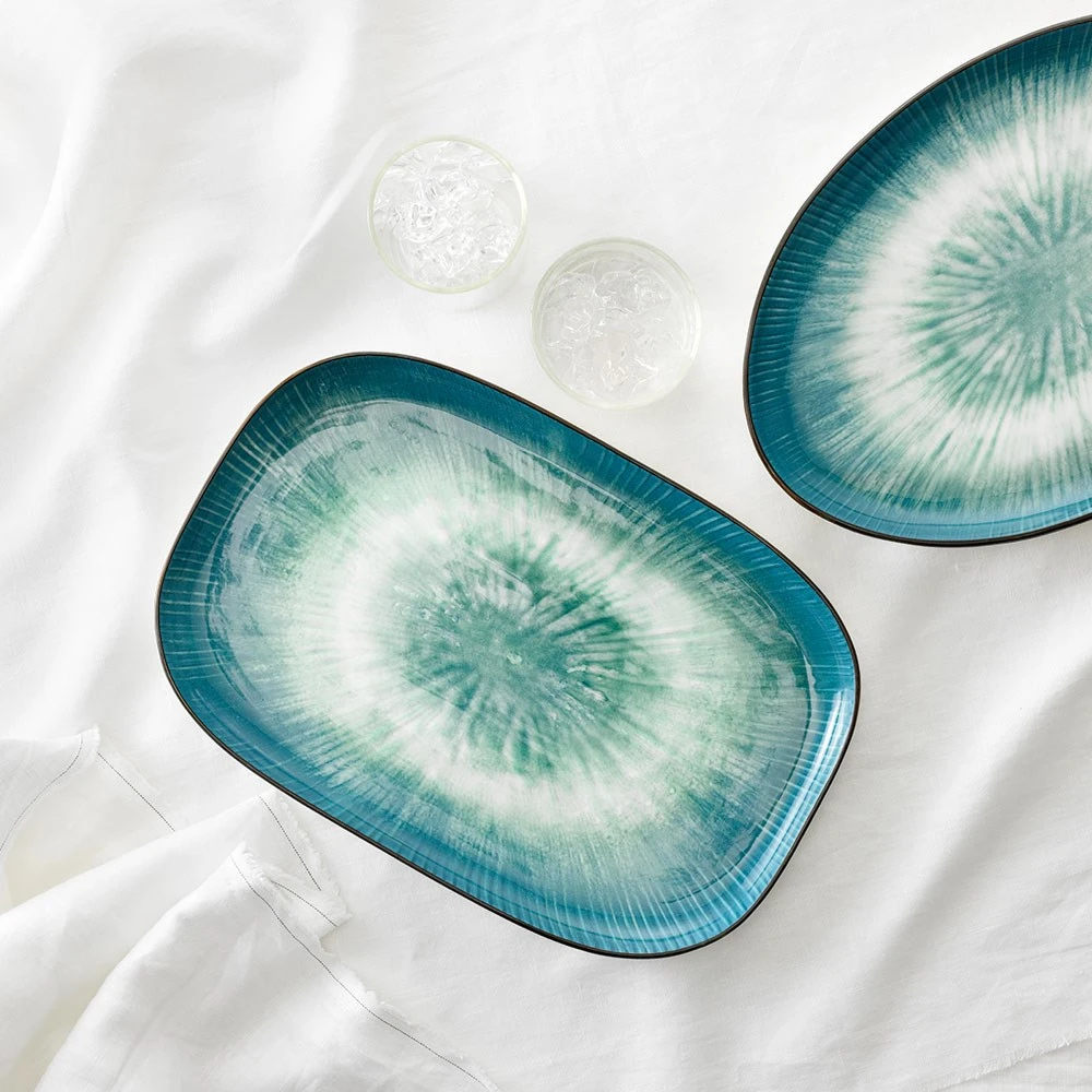 Inspired to enhance every day and dining experience, the Jade Rectangle Platter 33cm Teal from Alex Liddy is a fantastic addition to any home. Crafted with premium New Bone China ensures this platter is perfect for everyday use and special occasions as it is natural durable and stunningly beautiful. The Jade Rectangle Platter 33cm Teal features a gorgeous teal colour and a subtle tie-dye design that is a unique creation from Alex Liddy. It comes presented beautifully boxed and makes a delightful gift for housewarmings, birthdays, and other special occasions. Refresh your dining aesthetic with the Alex Liddy Jade Rectangle Platter 33cm. For added convenience, this dish is a microwave friendly and dishwasher safe with a mild detergent on a gentle cycle.